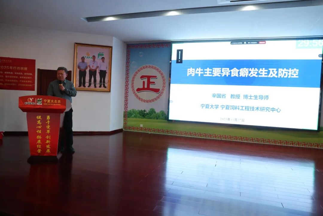 为深入贯彻落实创新驱动发展战略,以科技力量赋能地方特色产业高质量发展,宁夏大学饲料工程技术研究中心(以下简称“饲料中心”)始终秉持“服务地方、服务产业”的宗旨,积极推动产学研用深度融合。11月27日至28日,饲料中心辛国省教授应邀出席“宁夏大北农2025年科技创新会议”,并作专题技术报告,将前沿科研成果精准输送至生产一线,以实际行动践行科技创新驱动产业发展的使命。